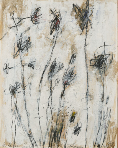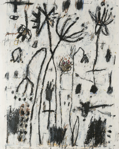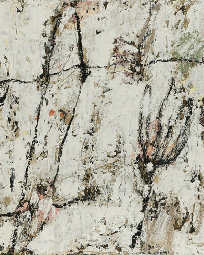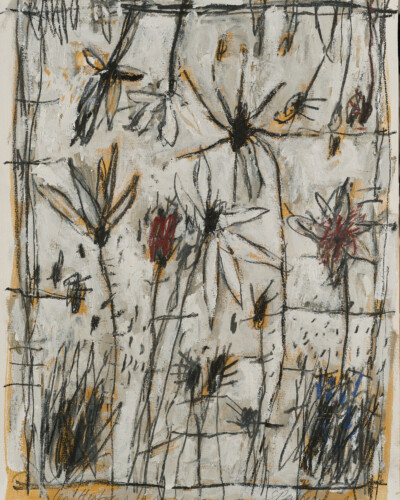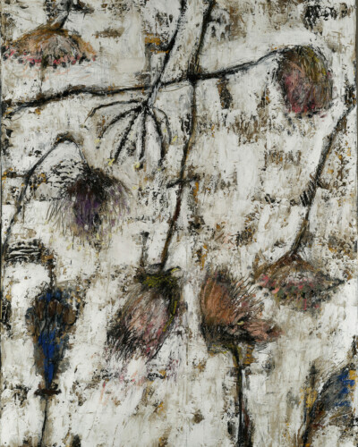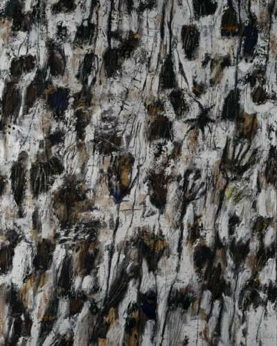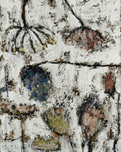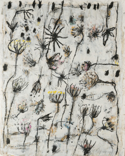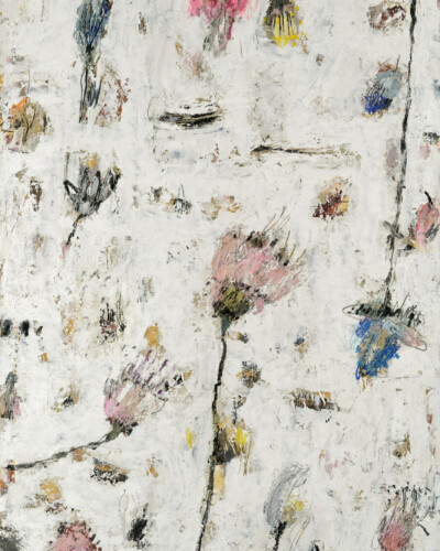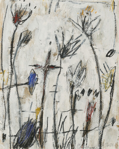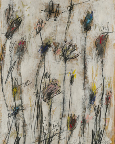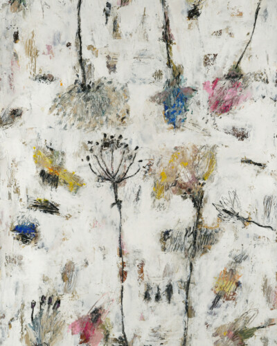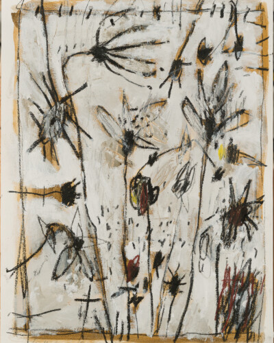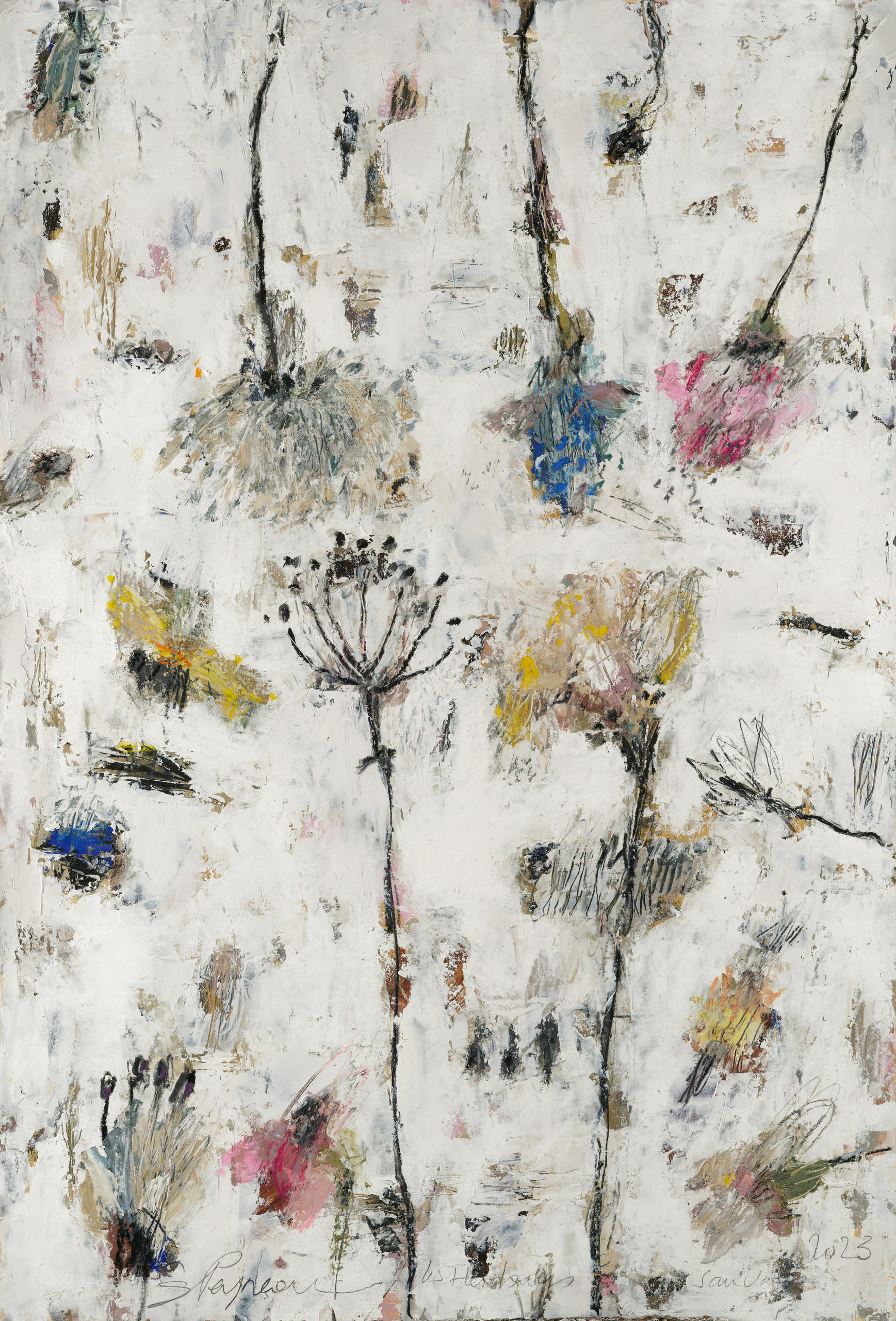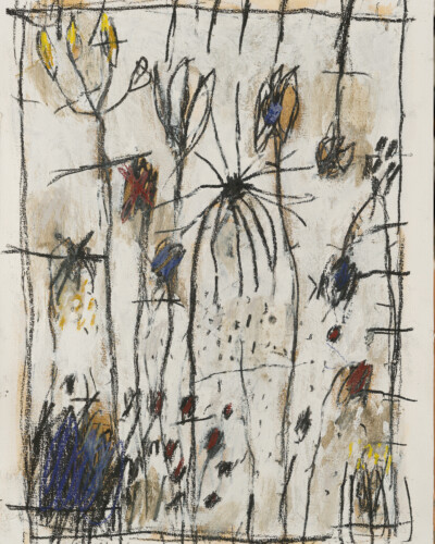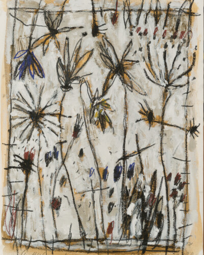 Peinture acrylique et pastel à l'huile sur papier frangé