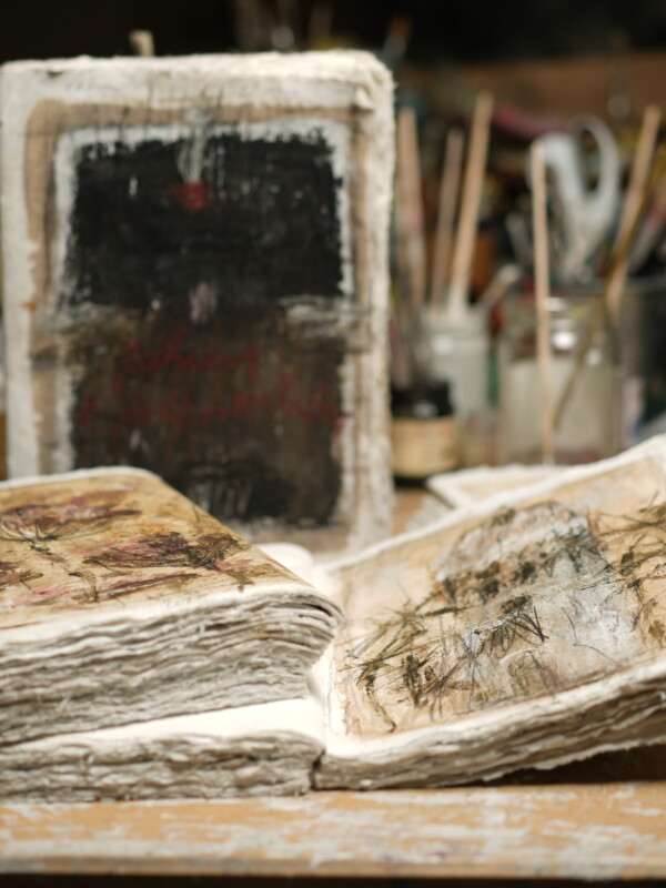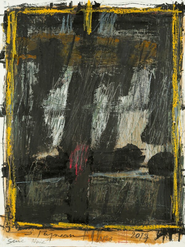peinture et pastel à l'huile sur papier frangé